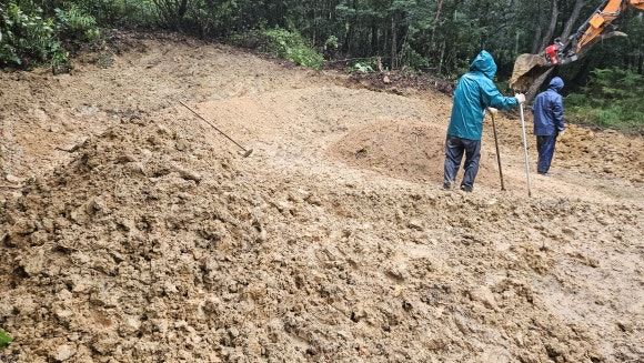 폭우 속 장례와 묘지공사